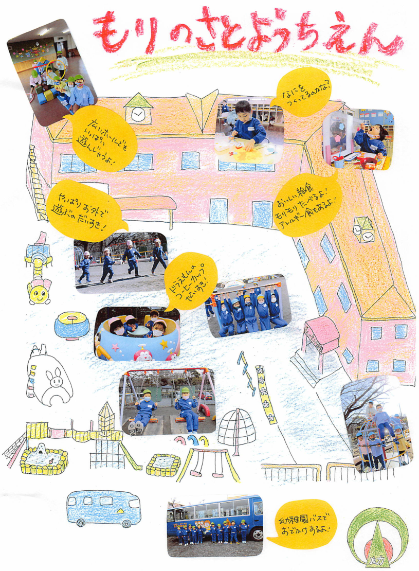 そんな森の里幼稚園は、いつもキラキラ輝く笑顔とたくさんの笑い声の中、元気いっぱいの子どもたちが思いやりの心を育てています。