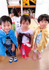 これらの教育内容を達成するにあたり、自発的な活動を展開する過程で年齢、クラスをオープンにし、落ちついたゆとりある保育の中で幼児の自主性と豊かな人間関係を培う「遊び」や「活動」を導入し、総合的指導を行っています。